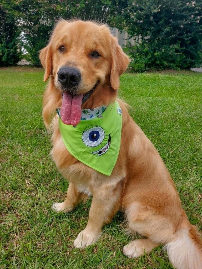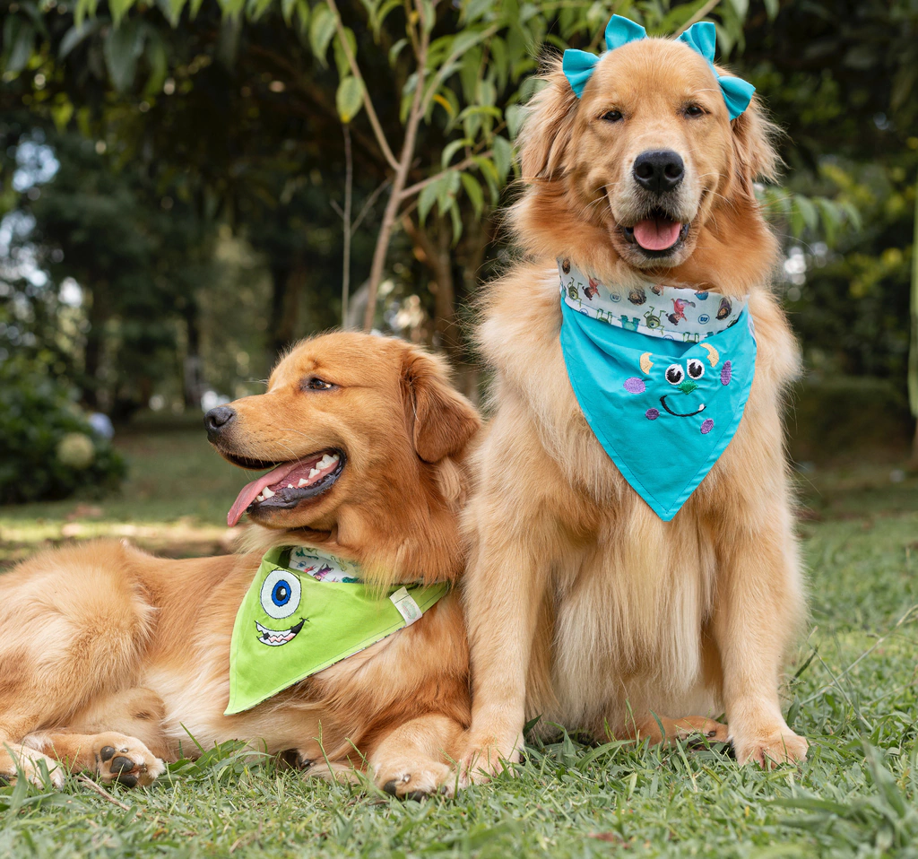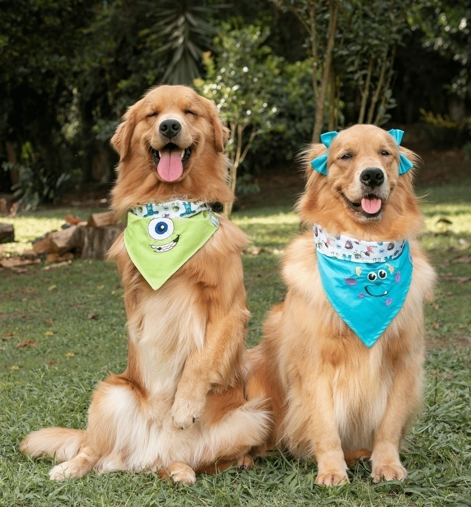 Bandana dupla face confeccionada de forma artesanal em tricoline 100% algodão e tricoline misto. Fechamento em botões de pressão de plástico com 2 regulagens. O padrão da estampa pode variar de acordo com o corte do tecido. Bordada com rosto do Mike Wazowski e opção de personalizar com o nome do pet. Informar no campo "Comentários adicionais" na página de finalização do pedido o nome a ser bordado. O anúncio refere-se apenas a bandana do Mike, os demais acessórios são vendidos separadamente.